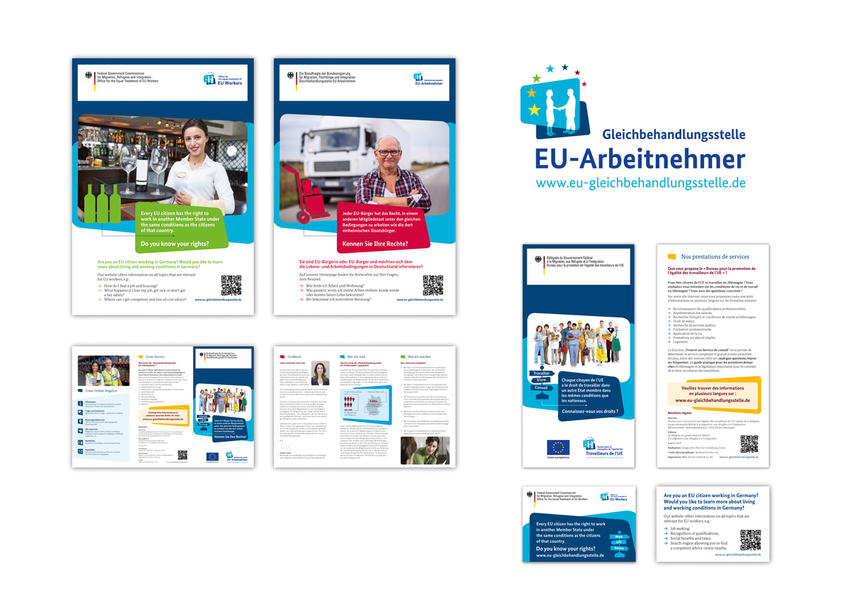 Für das Bundeskanzleramt haben wir schon in den vergangenen Jahren kleinere Projekte bearbeitet und freuen uns um so mehr, dass wir ausgewählt wurden ein Kampagnen-Logo nebst Konzeption, Corporate Design und CD-Manual für die EU-Kampagne „Gleichbehandlungsstelle für EU-Arbeitnehmer“ zu entwickeln. Es war eine wunderbare Zusammenarbeit mit dem Team der Gleichbehandlungsstelle und die Ergebnisse lassen sich zeigen. Neue Aufgaben für 2017 stehen schon an. Wir freuen uns!